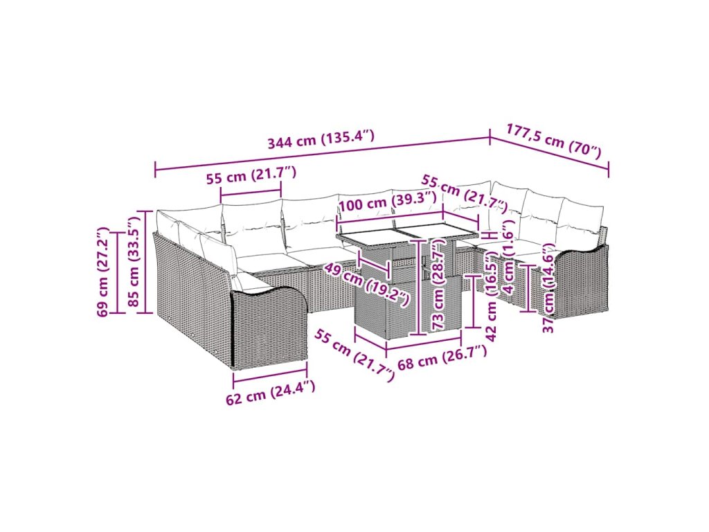 Sada zahradních pohovek s polštářem 11 pcs Béžová Poly ratan 3348536