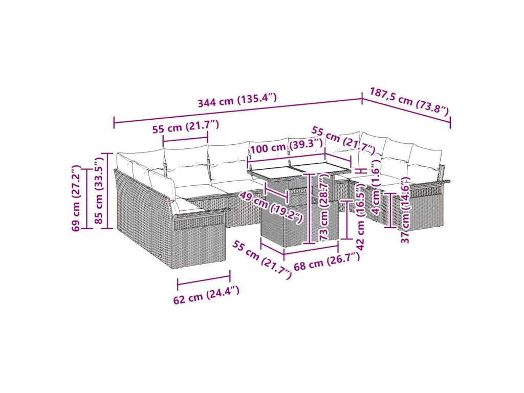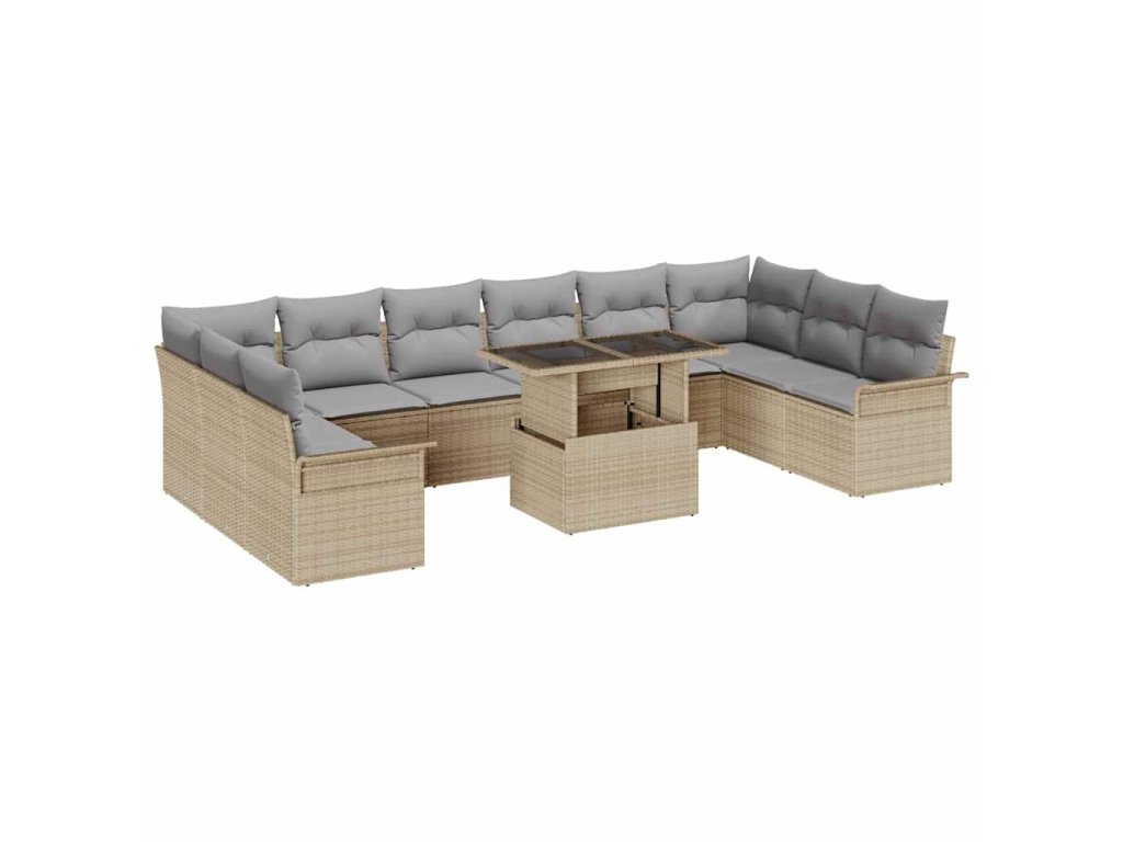 Sada zahradních pohovek s polštářem 11 pcs Béžová Poly Ratan 3357093