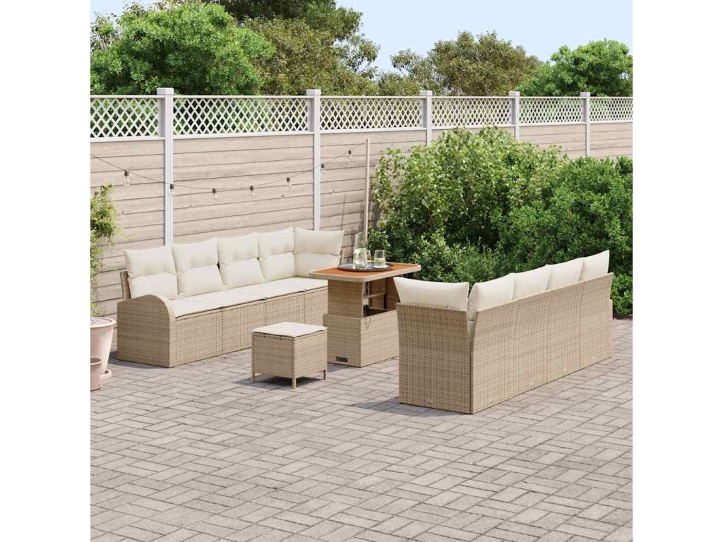 Sada zahradních pohovek s polštářem 11 pcs Béžová Poly ratan 3362371