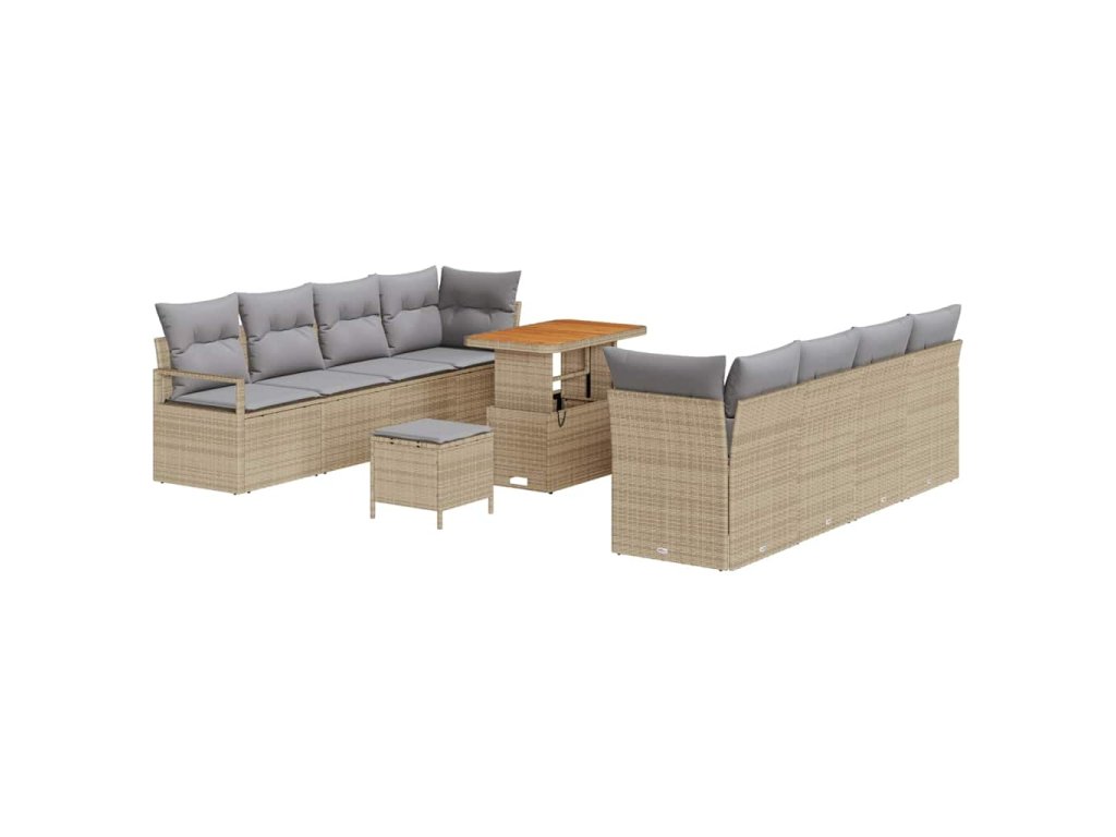 Sada zahradních pohovek s polštářem 11 pcs Béžová Poly ratan 3362502