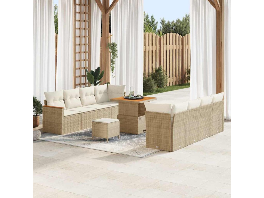 Sada zahradních pohovek s polštářem 11 pcs Béžová Poly ratan 3363016