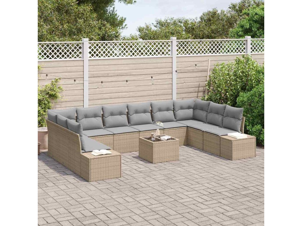 Sada zahradních pohovek s polštářem 11 pcs Béžová polyratan 3347250