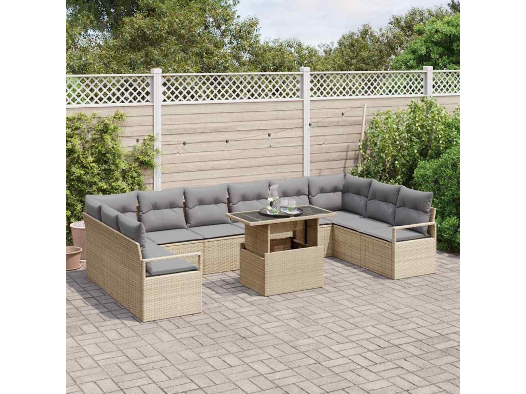 Sada zahradních pohovek s polštářem 11 pcs Béžová polyratan 3357633