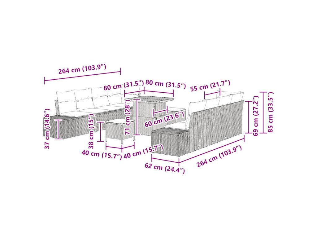 Sada zahradních pohovek s polštářem 11 pcs Béžová polyratan 3362756