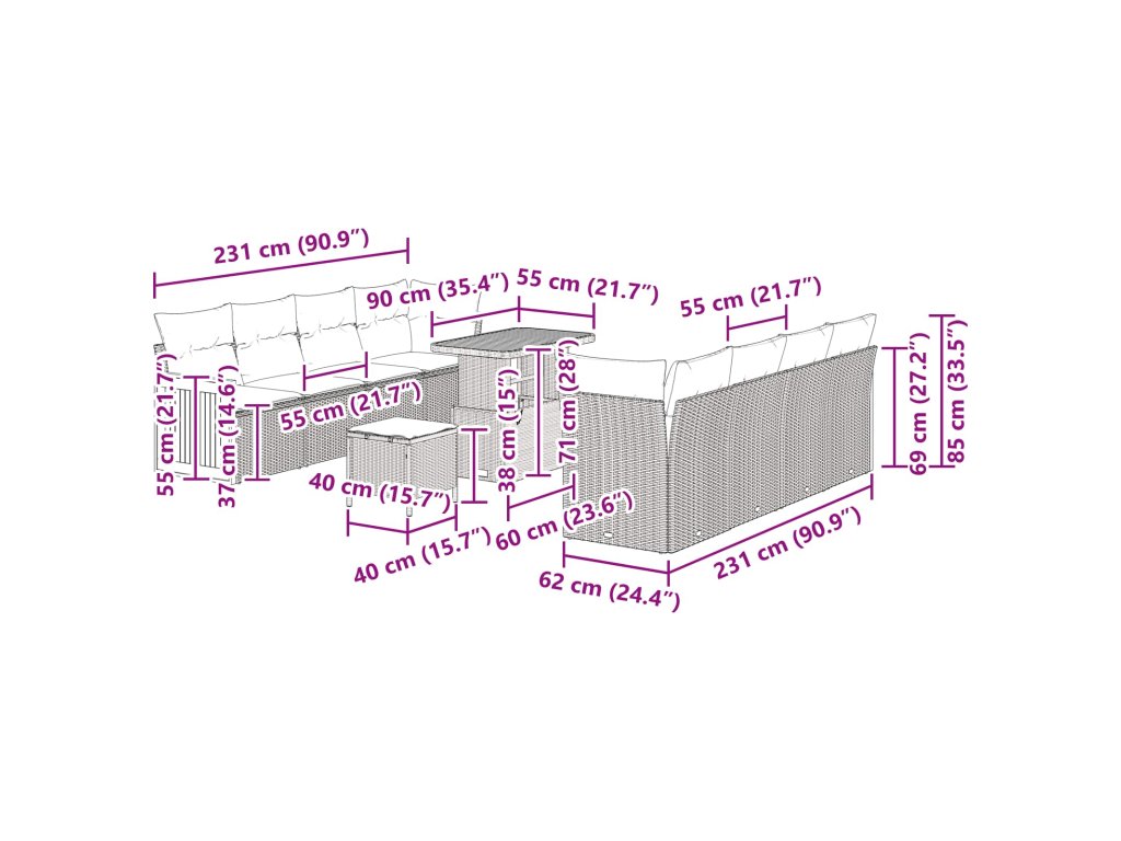 - Doporučené použití: Určeno pro venkovní akce, tahle sedací souprava snadno přechází mezi příjemným rodinným časem a živými večírky. Ať už jde o brunch v létě nebo jarní zahradní party, snadno se přizpůsobí všem tvoji společenský a volnočasový potřebám.