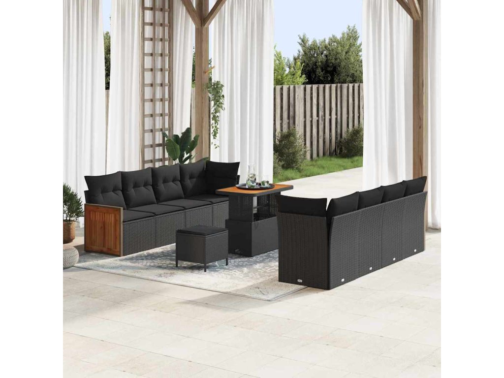 Sada zahradních pohovek s polštářem 11 pcs Černá 3363279