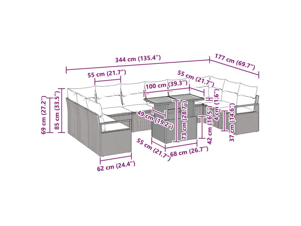 - Modulární Design: Tato souprava zahradního sofa vyniká svým modulárním designem, který poskytuje výjimečnou flexibilitu v uspořádání a používání. Přeskupte jednotky pro intimní prostředí nebo rozšiřte pro velké oslavy bez kompromisů, což ji činí přizpůsobivou volbou pro aktivní prostory.