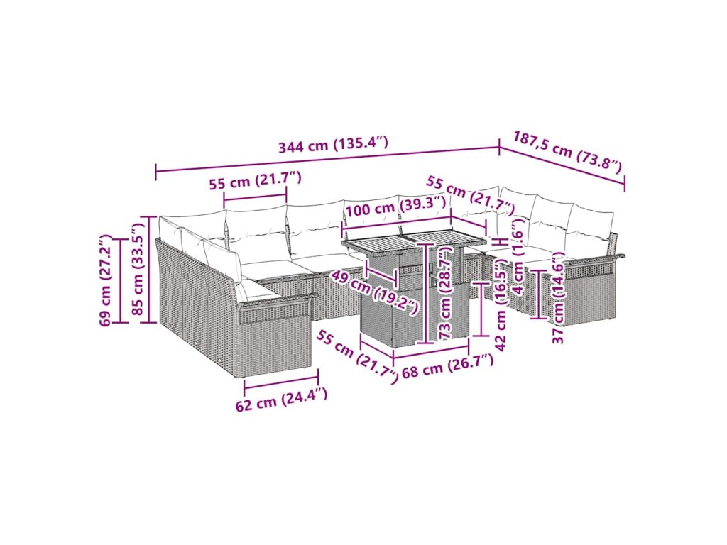 Sada zahradních pohovek s polštářem 11 pcs Černá a krémová 3349382
