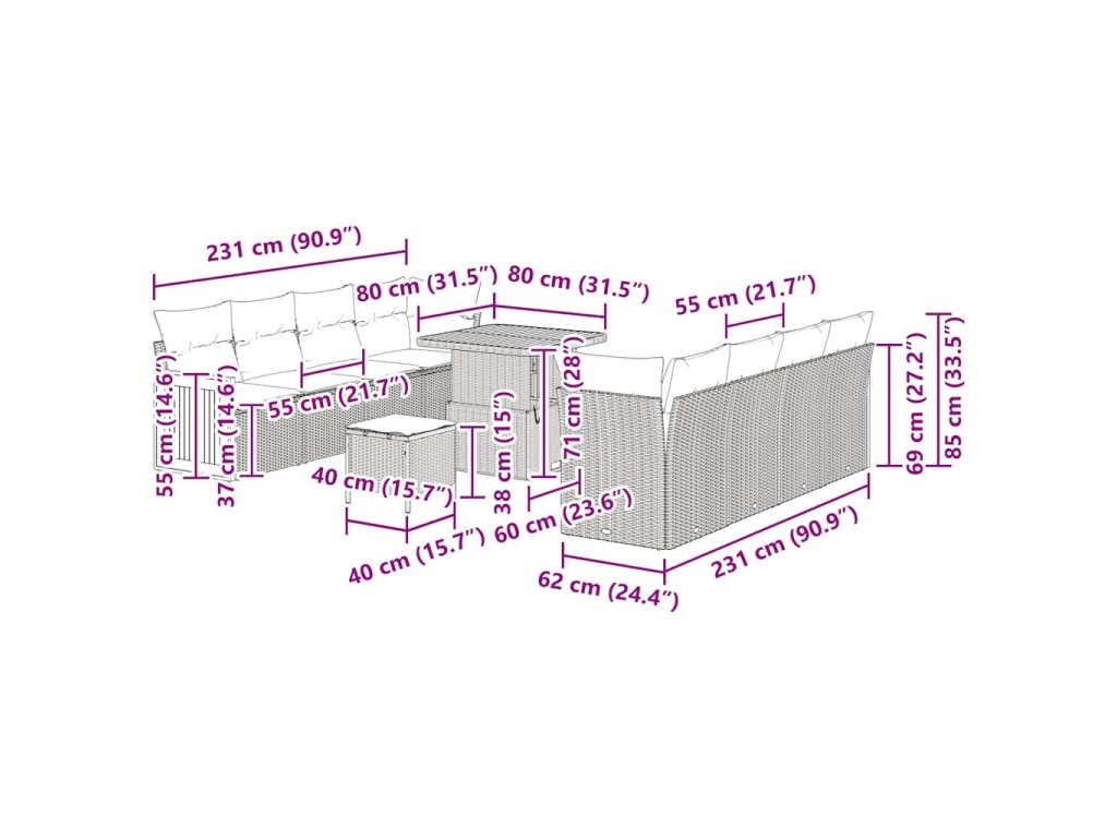 - Doporučené použití: Určeno pro venkovní akce, tahle sedací souprava snadno přechází mezi příjemným rodinným časem a živými večírky. Ať už jde o brunch v létě nebo jarní zahradní party, snadno se přizpůsobí všem tvoji společenský a volnočasový potřebám.