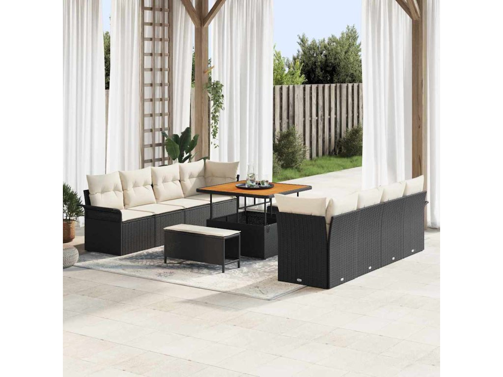 Sada zahradních pohovek s polštářem 11 pcs Černá a krémová 3364065
