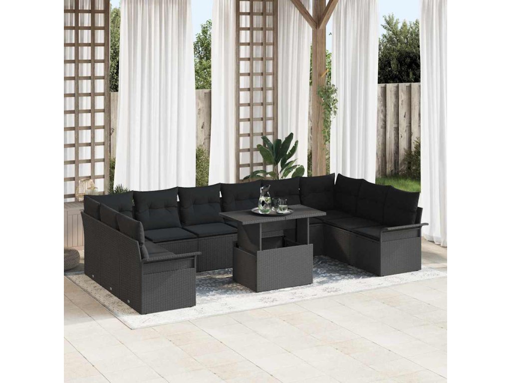 Sada zahradních pohovek s polštářem 11 pcs Černá Poly ratan 3348359