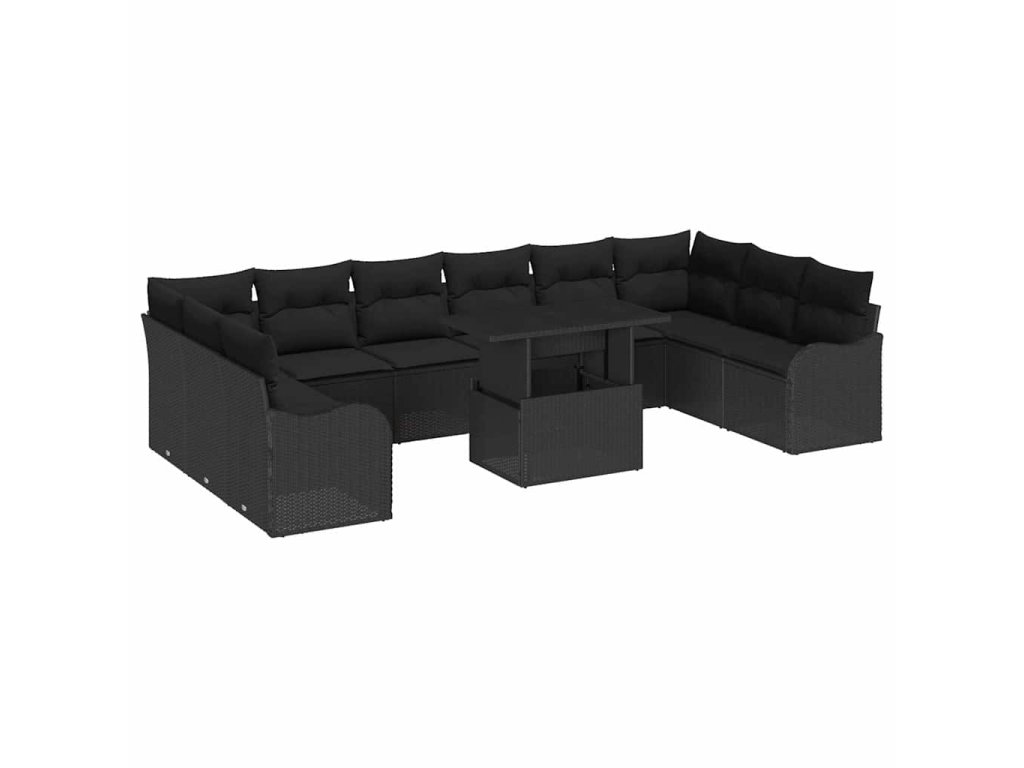 Sada zahradních pohovek s polštářem 11 pcs Černá Poly Ratan 3357276