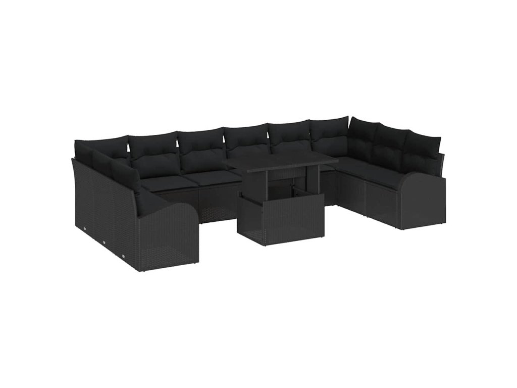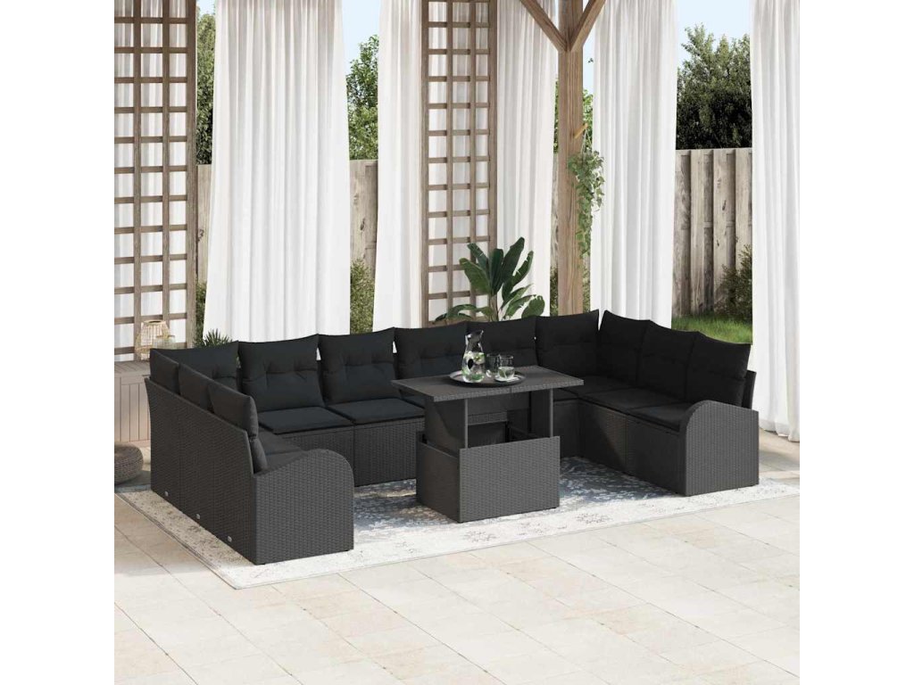 Sada zahradních pohovek s polštářem 11 pcs Černá Poly ratan 3357456