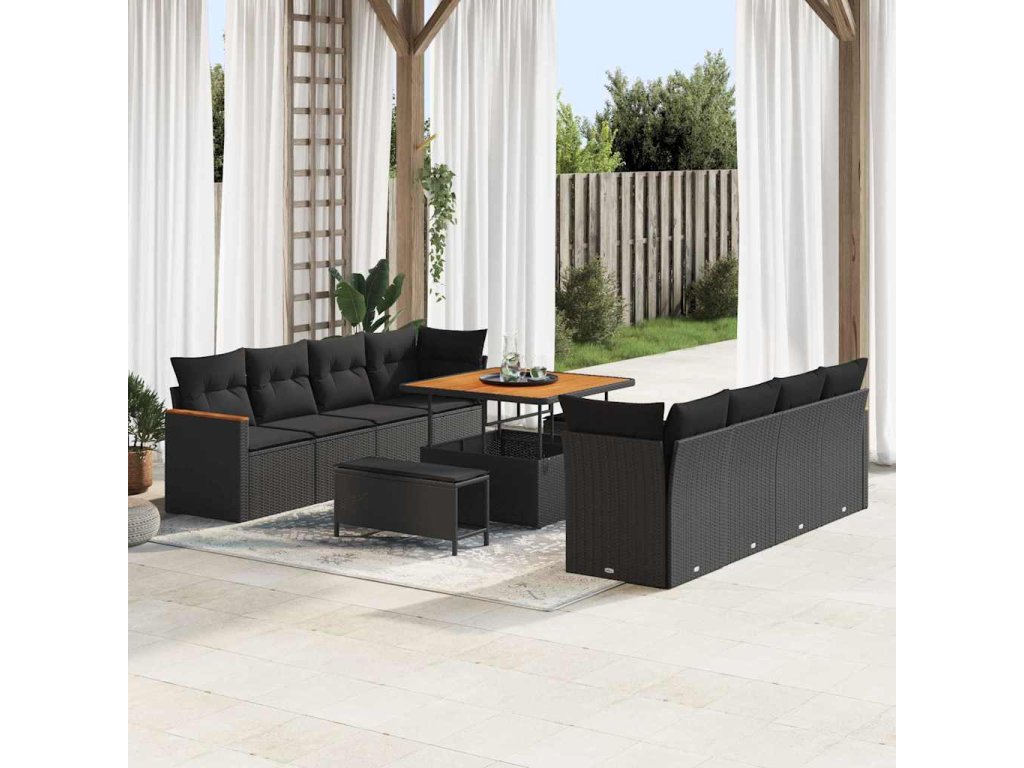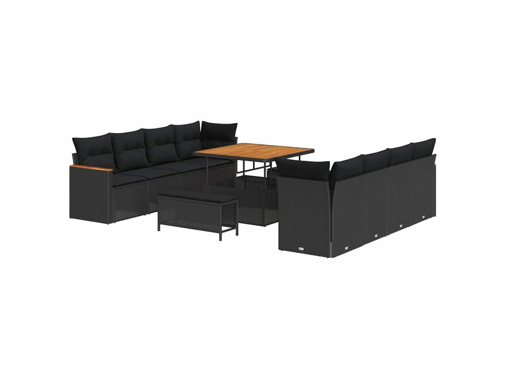 Sada zahradních pohovek s polštářem 11 pcs Černá Poly ratan 3363024