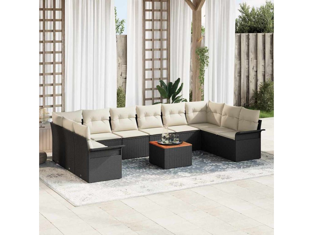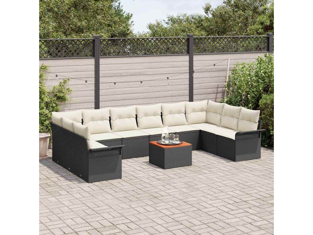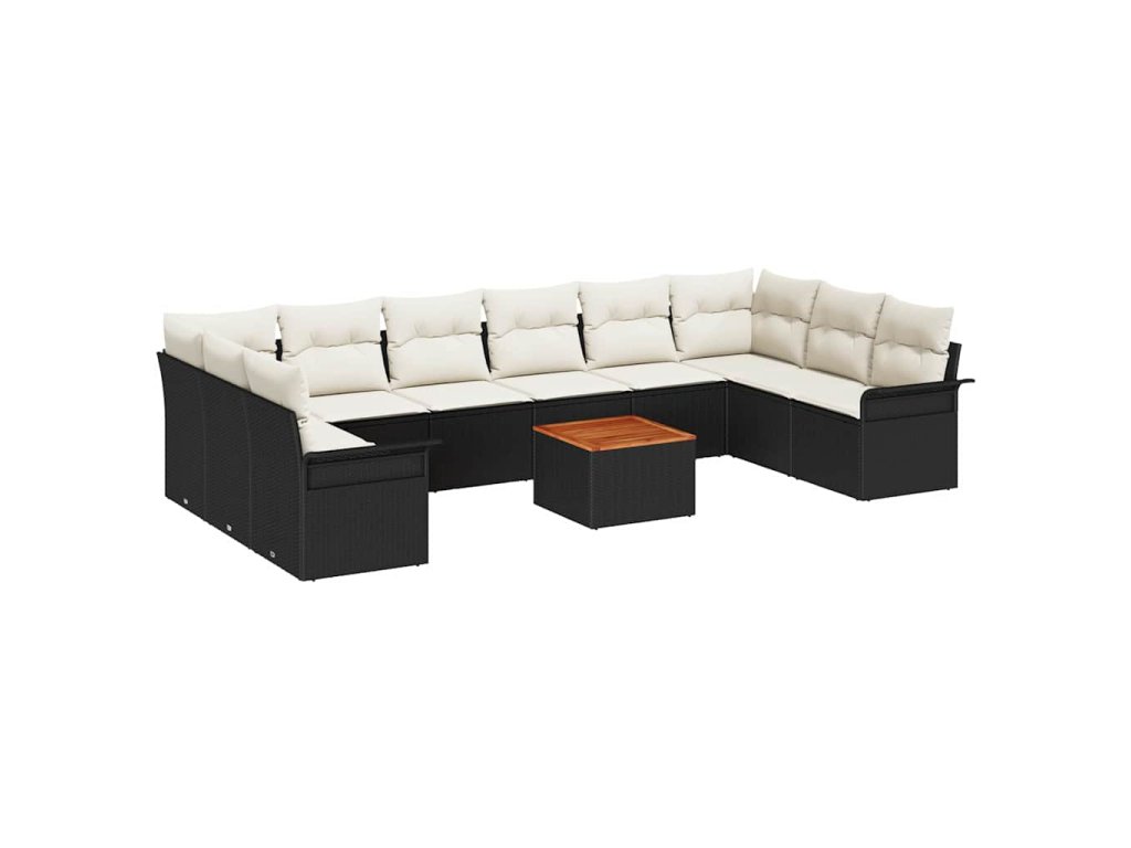 Sada zahradních pohovek s polštářem 11 pcs Černá polyratan 3347376