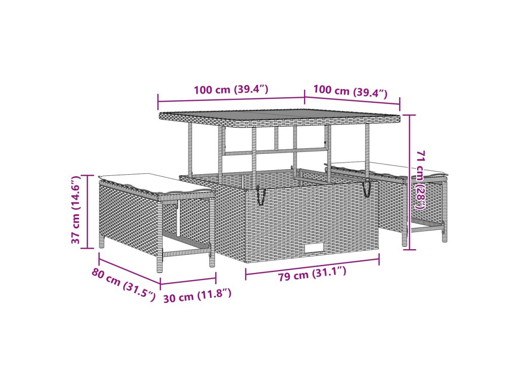 - 1 x Stůl: 100 x 100 x 71 cm (D x Š x V)