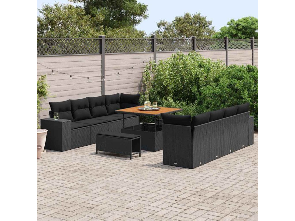 Sada zahradních pohovek s polštářem 11 pcs Černá polyratan 3361984