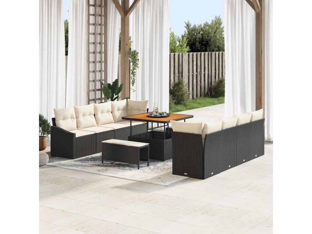 Sada zahradních pohovek s polštářem 11 pcs Černá polyratan 3362635