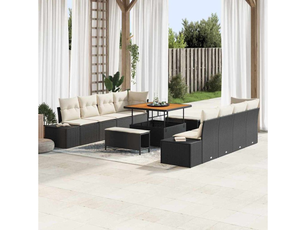 Sada zahradních pohovek s polštářem 11 pcs Černá polyratan 3362765