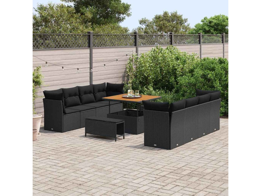 Sada zahradních pohovek s polštářem 11 pcs Černá polyratan 3363414