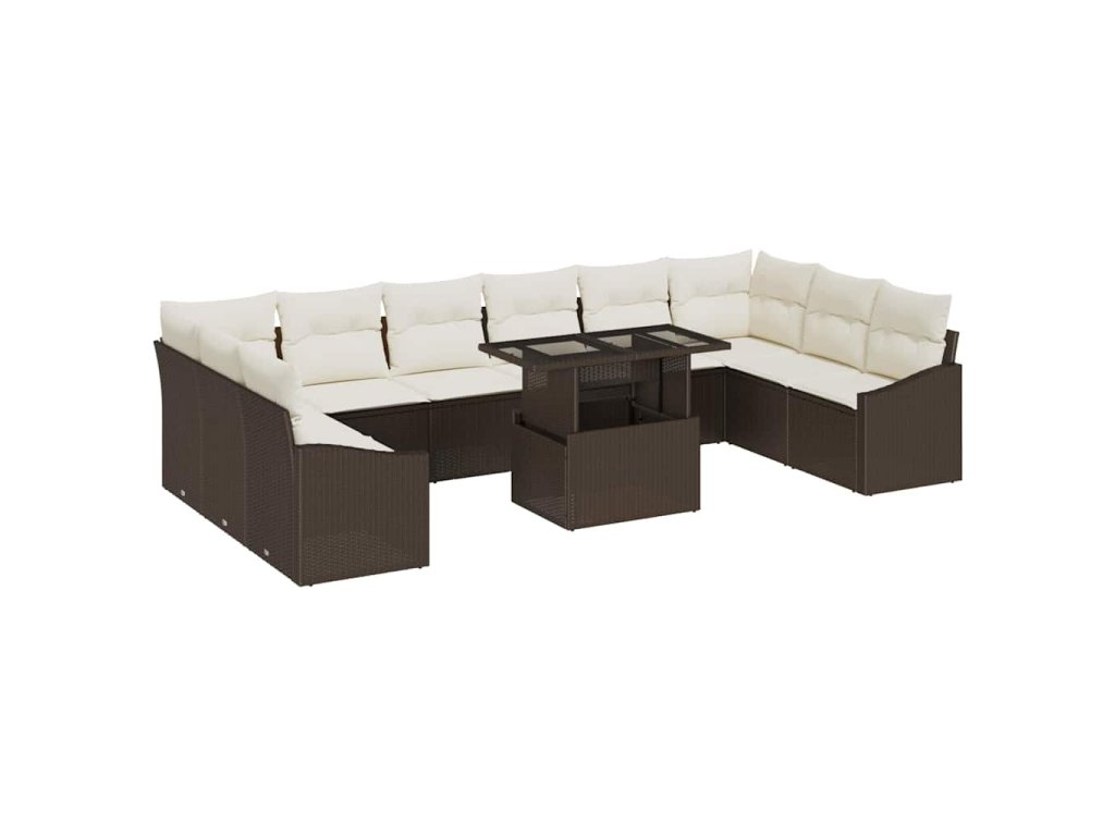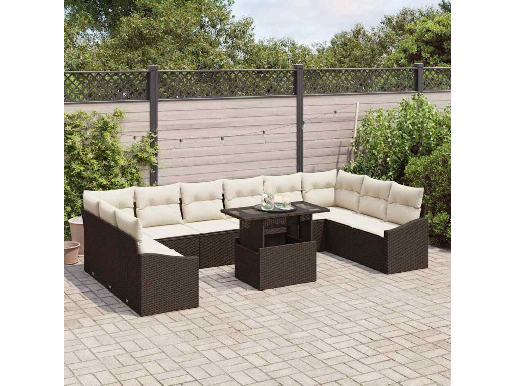 Sada zahradních pohovek s polštářem 11 pcs Hnědá a krémová 3357811