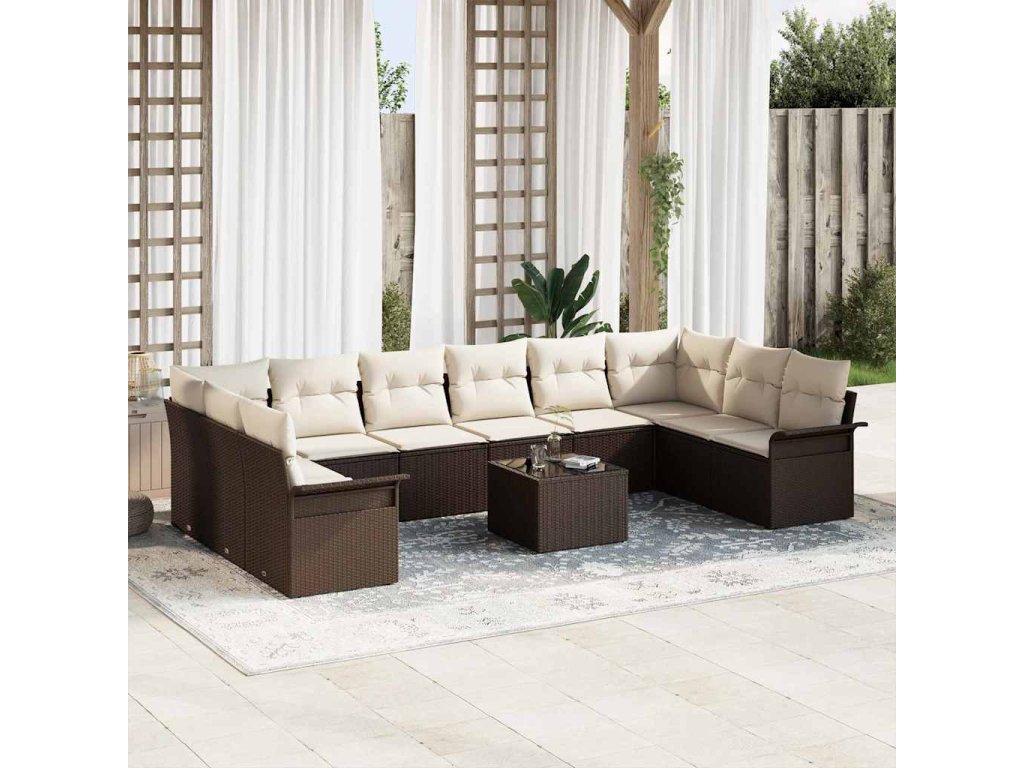 Sada zahradních pohovek s polštářem 11 pcs Hnědá Poly ratan 3345548