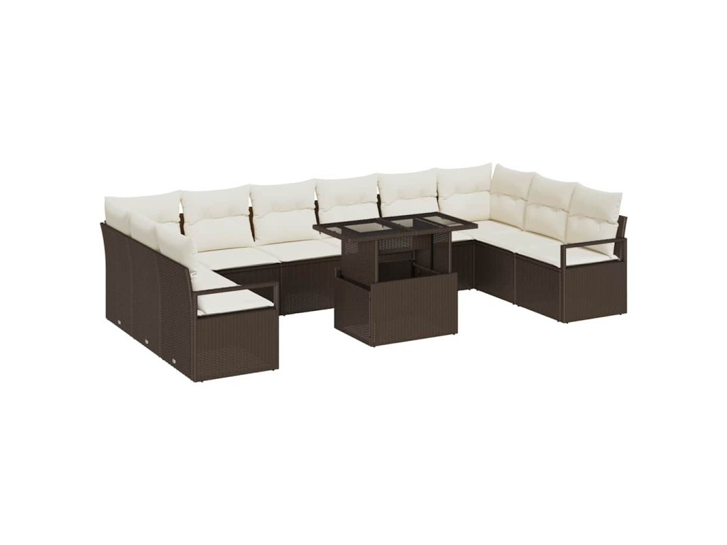 Sada zahradních pohovek s polštářem 11 pcs Hnědá polyratan 3357631