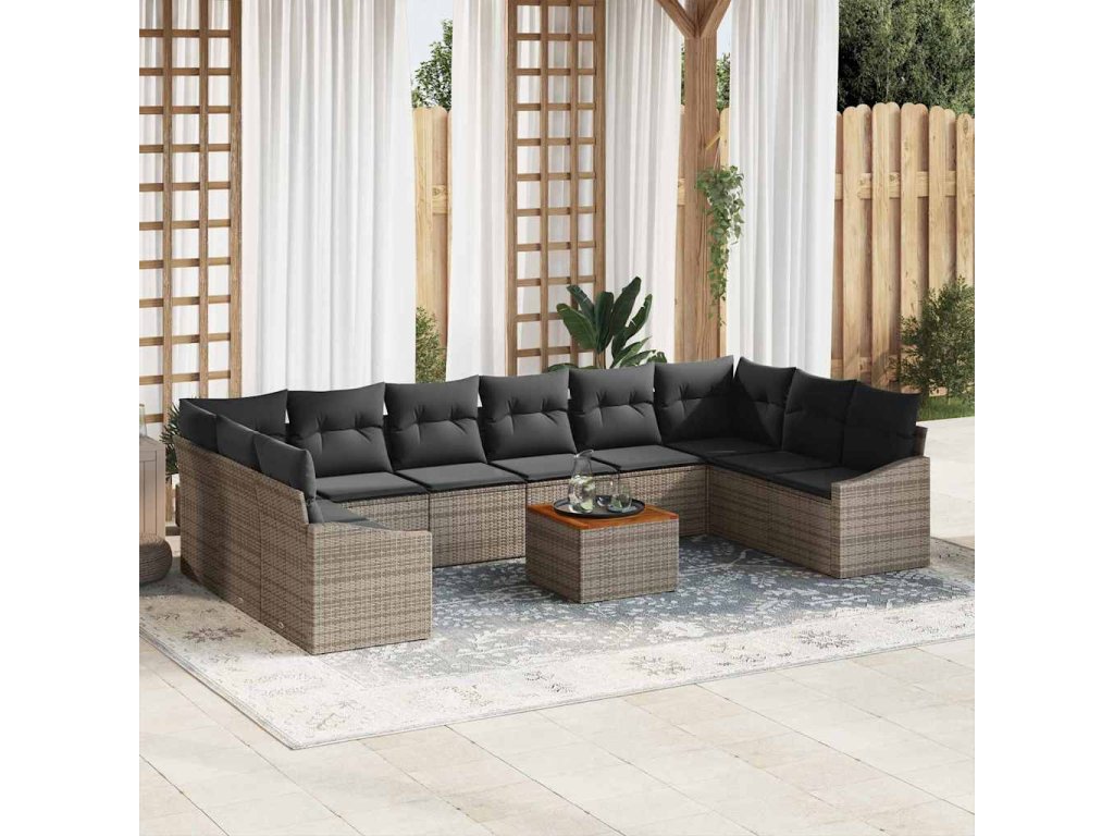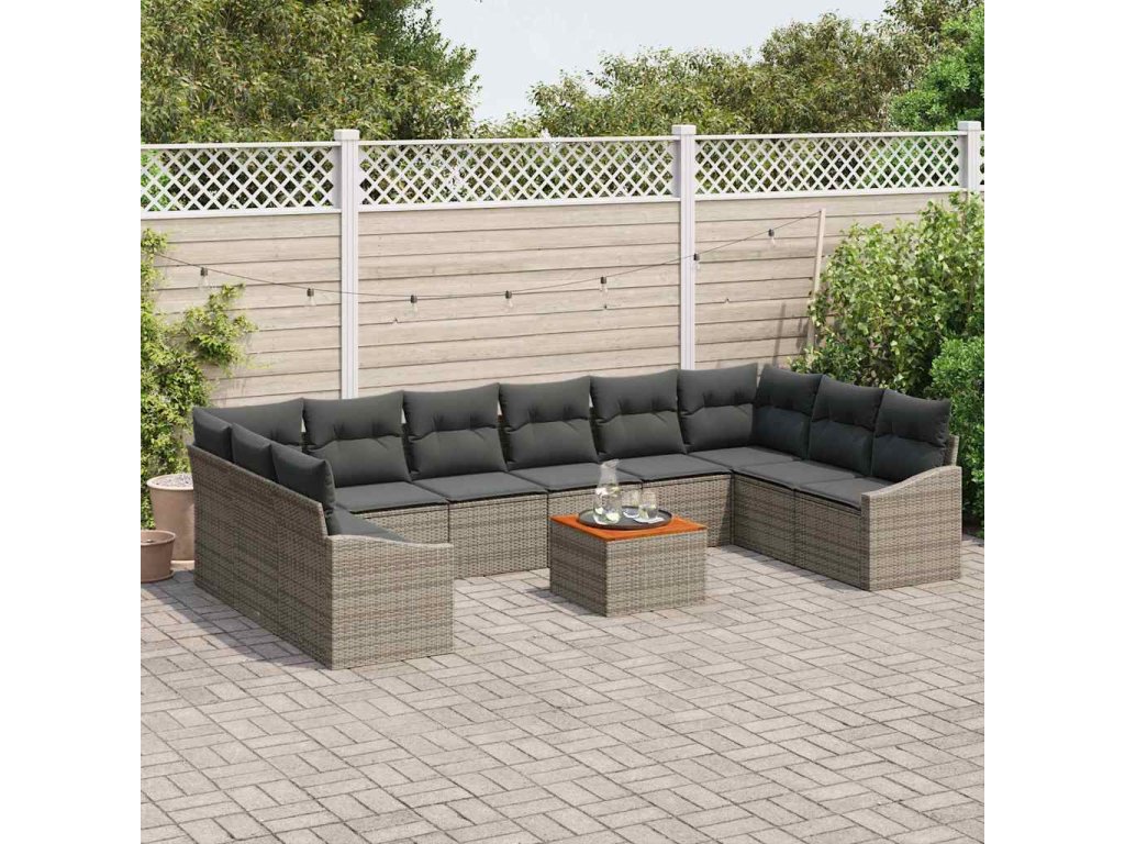 Sada zahradních pohovek s polštářem 11 pcs Šedá Poly ratan 3347881