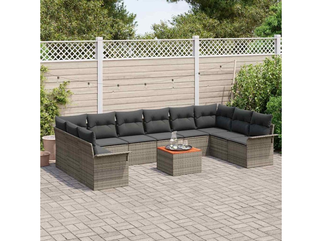 Sada zahradních pohovek s polštářem 11 pcs Šedá polyratan 3347377