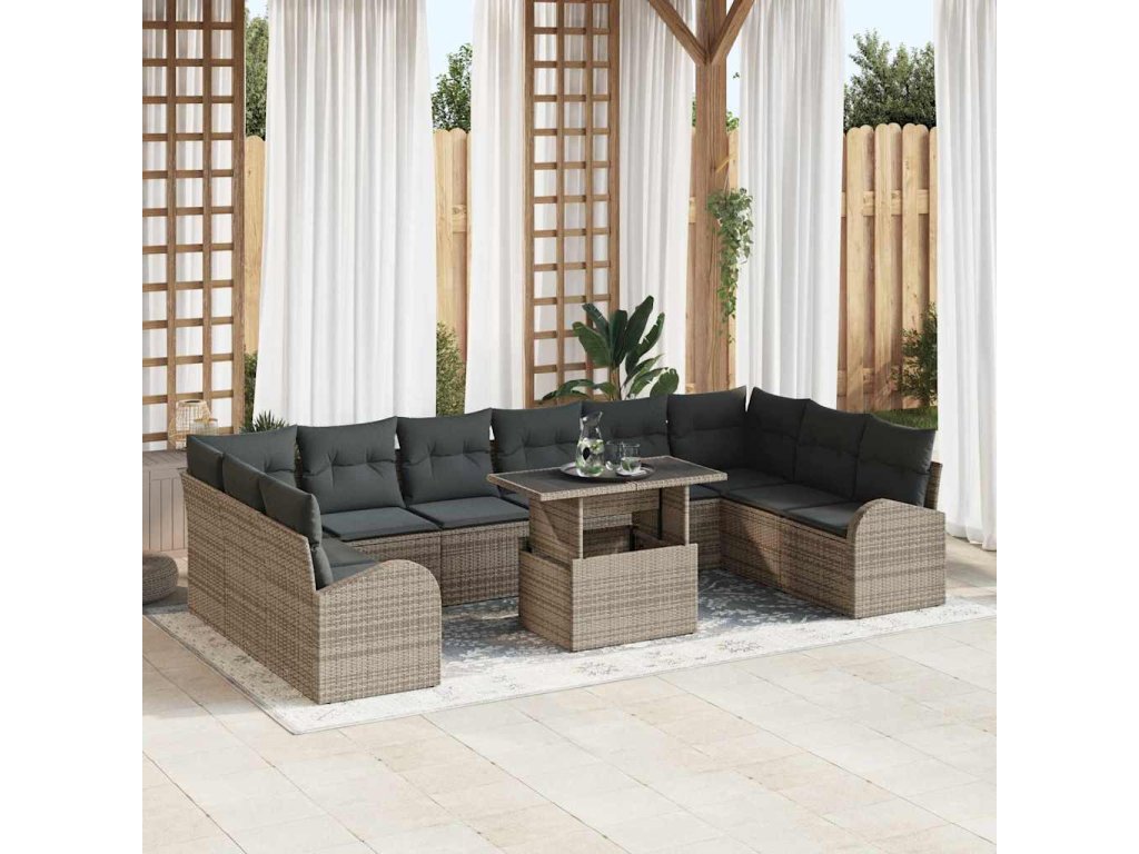 Sada zahradních pohovek s polštářem 11 pcs Šedá polyratan 3348715