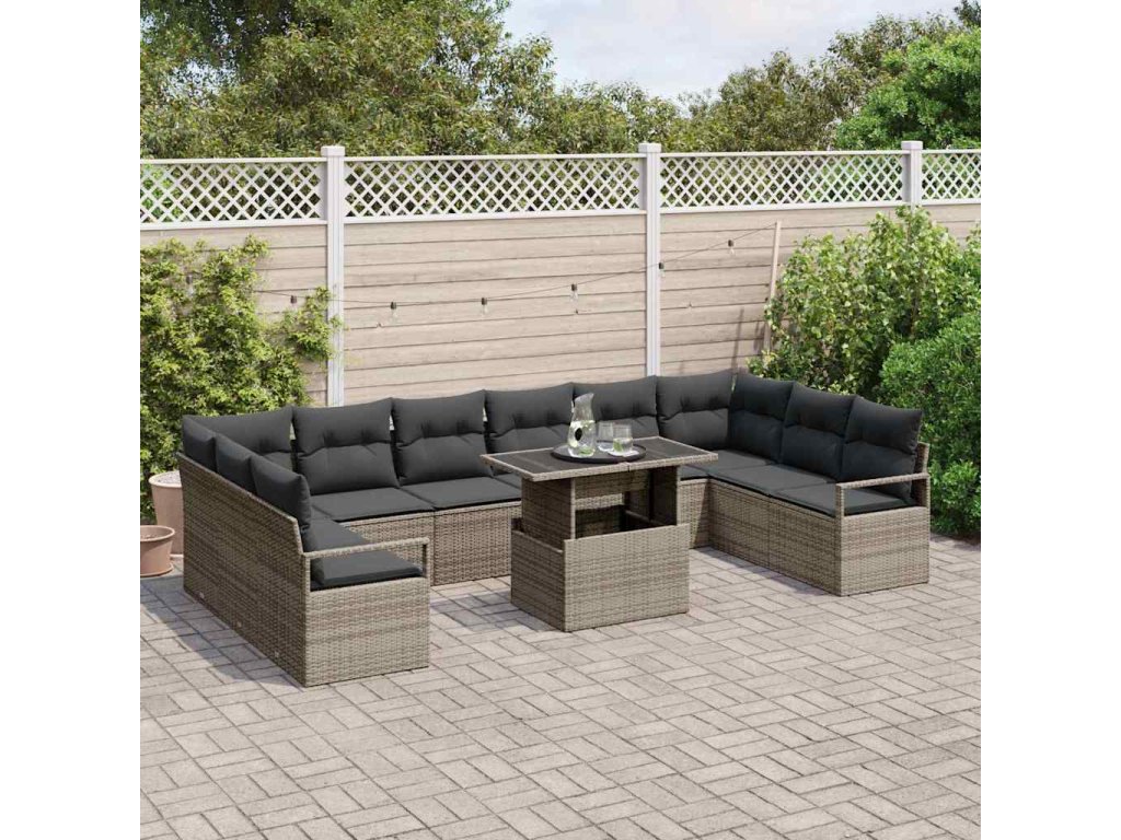 Sada zahradních pohovek s polštářem 11 pcs Šedá polyratan 3348895