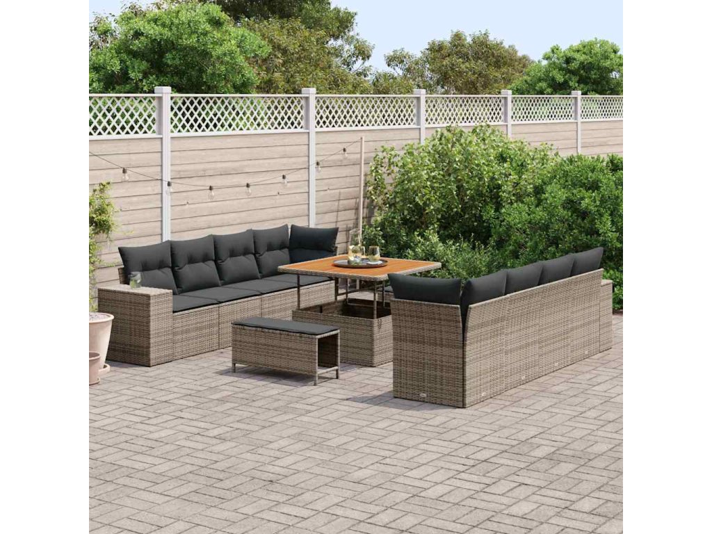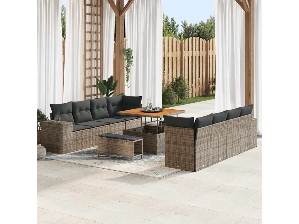 Sada zahradních pohovek s polštářem 11 pcs Šedá polyratan 3361988