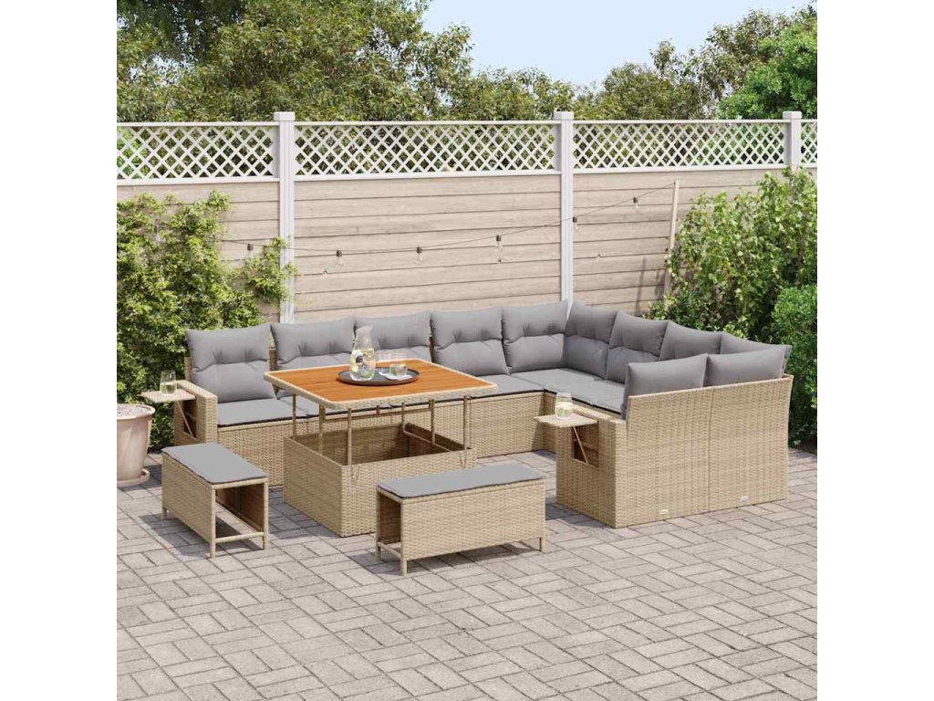 Sada zahradních pohovek s polštářem 12 pcs béžová a světle šedá 3363727