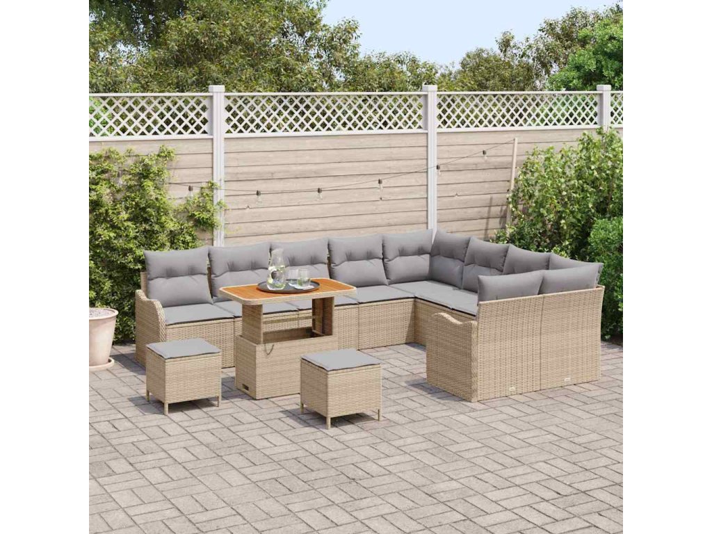 Sada zahradních pohovek s polštářem 12 pcs Béžová a Světle šedá 3364257