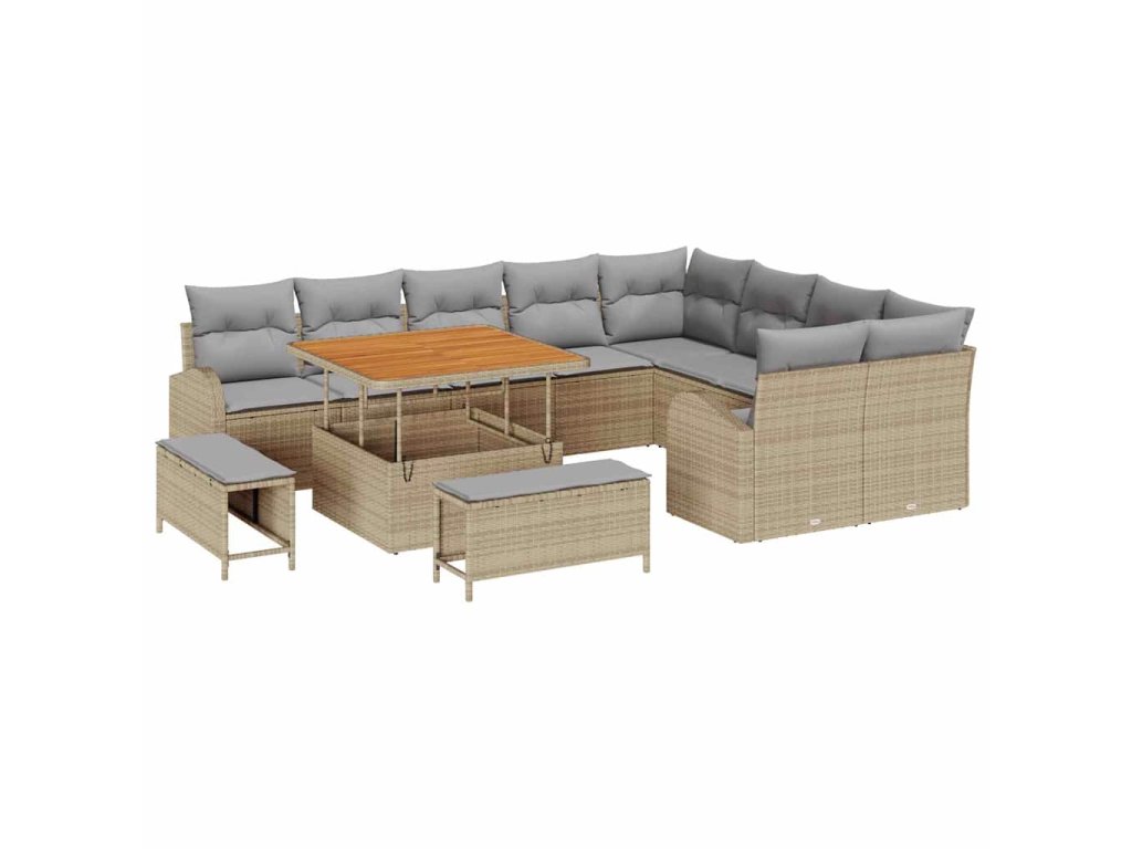 Sada zahradních pohovek s polštářem 12 pcs Béžová a Světle šedá 3364377