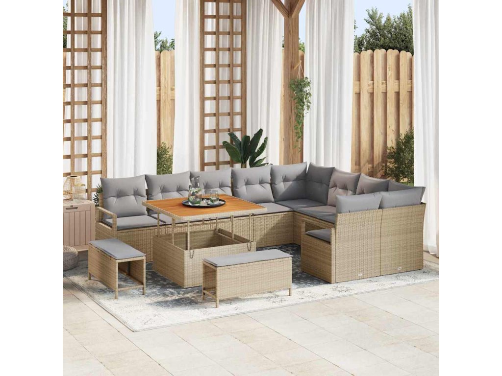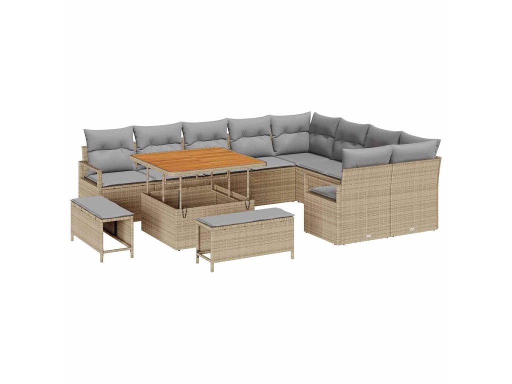 Sada zahradních pohovek s polštářem 12 pcs Béžová Poly ratan 3362557