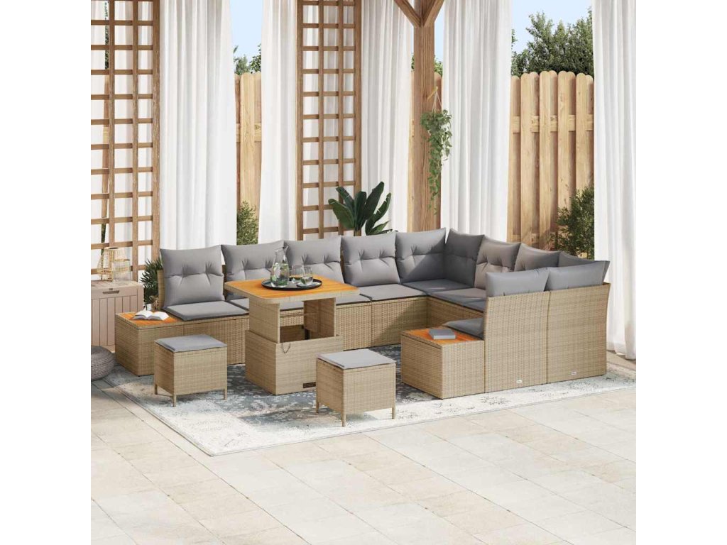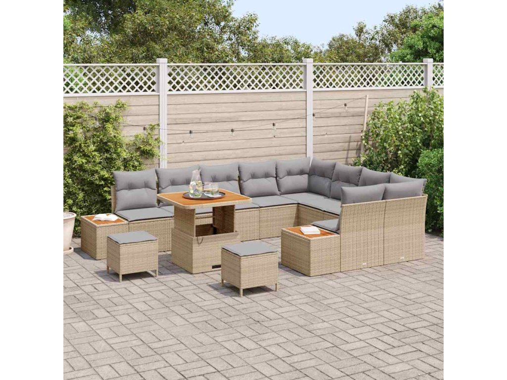 Sada zahradních pohovek s polštářem 12 pcs Béžová Poly ratan 3362952