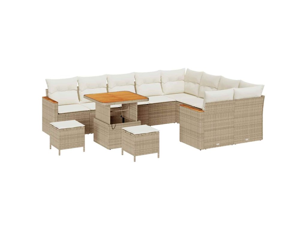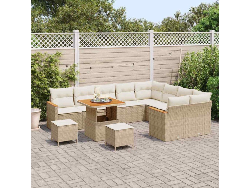 Sada zahradních pohovek s polštářem 12 pcs Béžová Poly Ratan 3365031