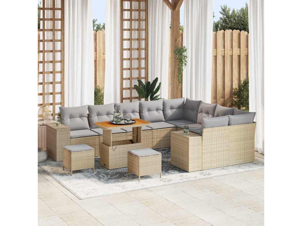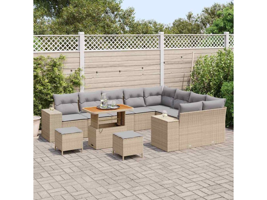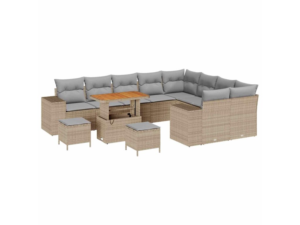 Sada zahradních pohovek s polštářem 12 pcs Béžová polyratan 3362047