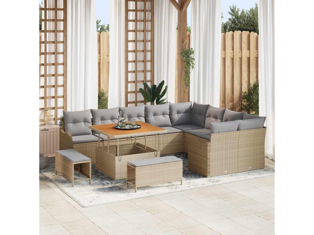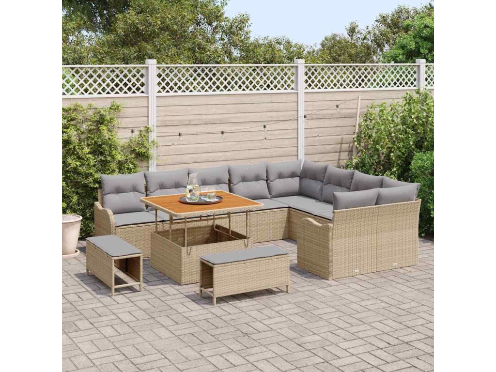 Sada zahradních pohovek s polštářem 12 pcs Béžová polyratan 3362297