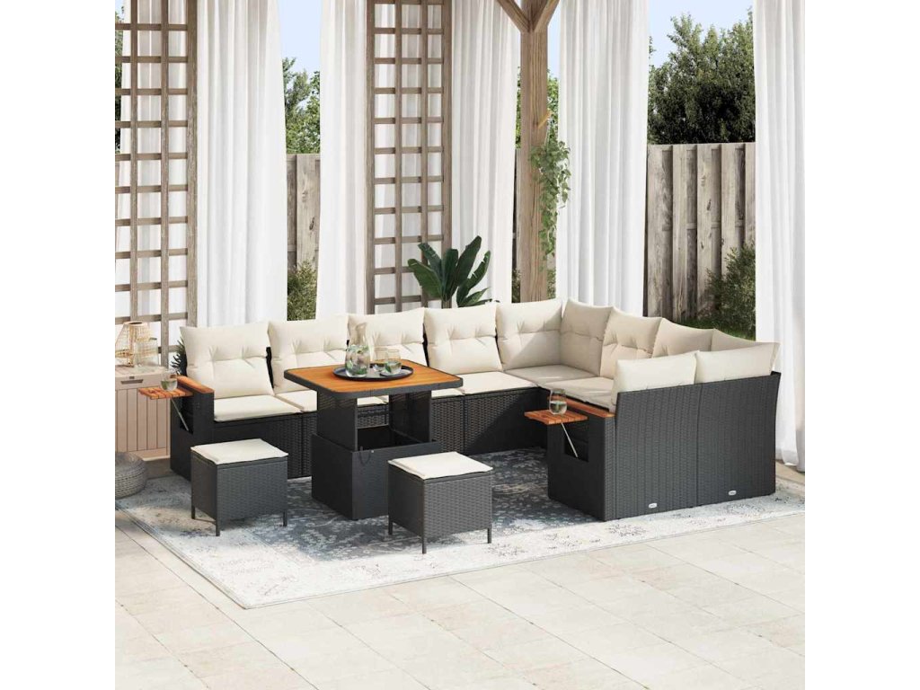 Sada zahradních pohovek s polštářem 12 pcs Černá a krémová 3363210