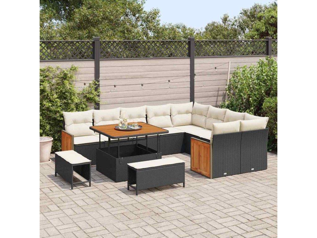 Sada zahradních pohovek s polštářem 12 pcs Černá a krémová 3363335