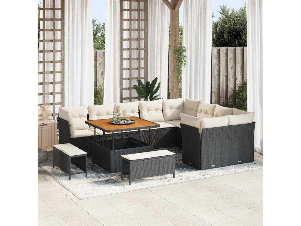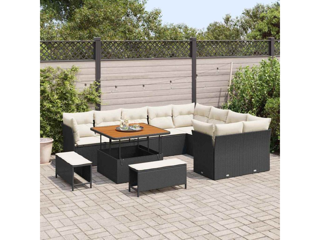 Sada zahradních pohovek s polštářem 12 pcs Černá a krémová 3363465