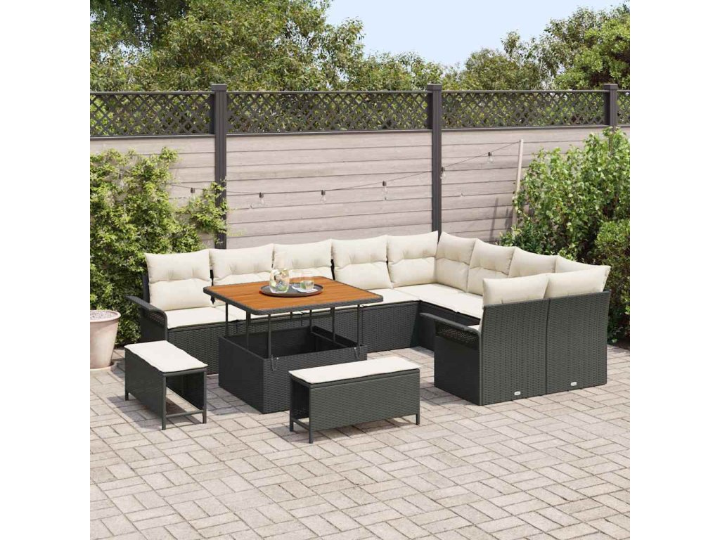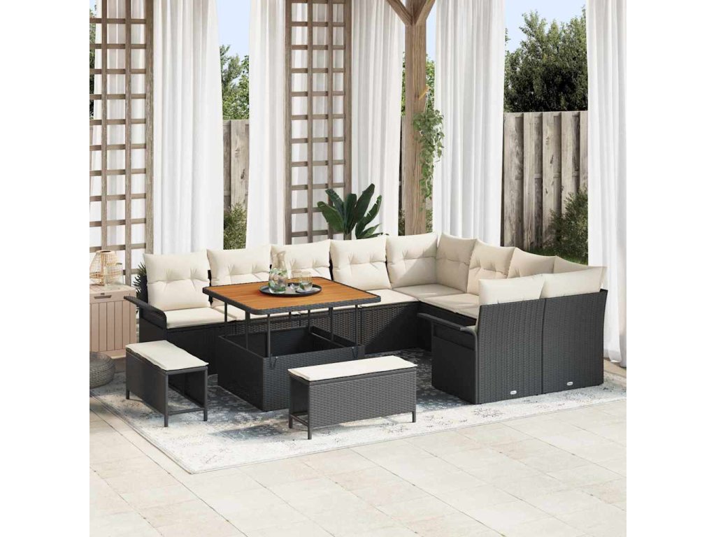 Sada zahradních pohovek s polštářem 12 pcs Černá a krémová 3364115