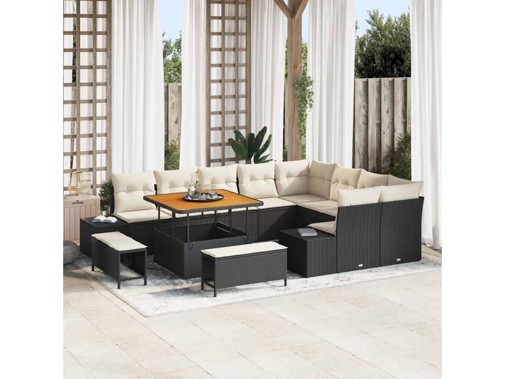 Sada zahradních pohovek s polštářem 12 pcs Černá a krémová 3364765