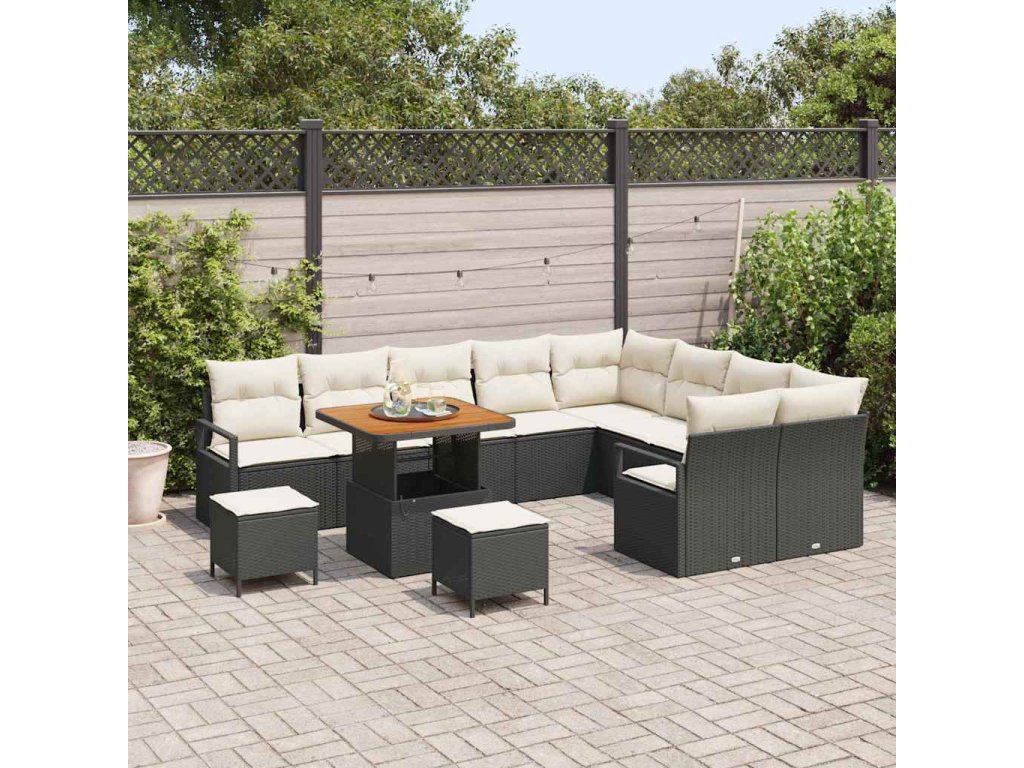 Sada zahradních pohovek s polštářem 12 pcs Černá Poly ratan 3362560