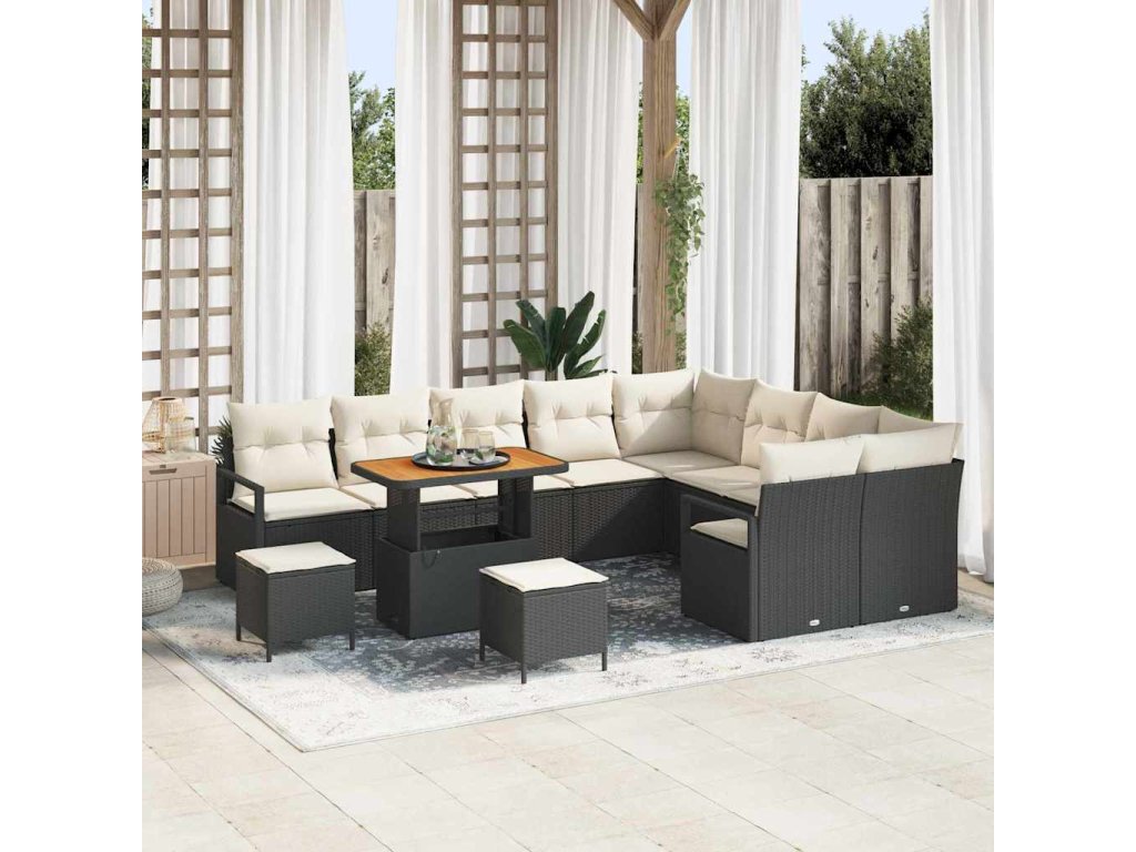 Sada zahradních pohovek s polštářem 12 pcs Černá Poly ratan 3362565