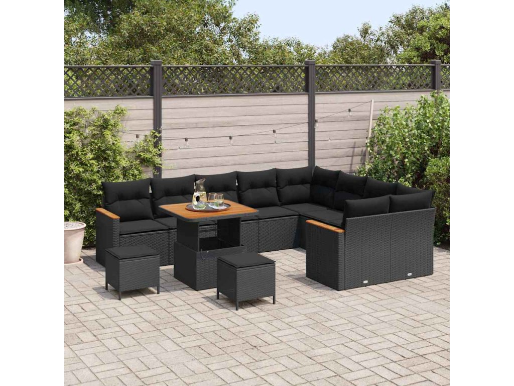 Sada zahradních pohovek s polštářem 12 pcs Černá Poly Ratan 3365029