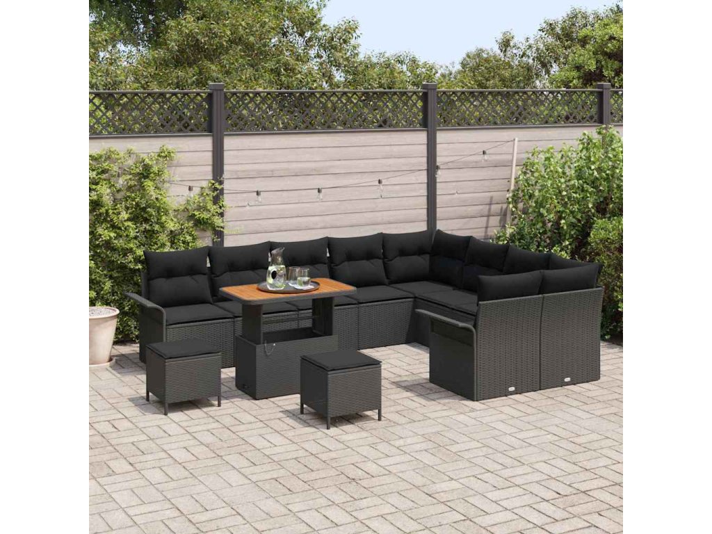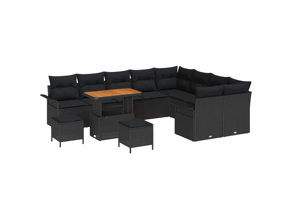 Sada zahradních pohovek s polštářem 12 pcs Černá polyratan 3362174