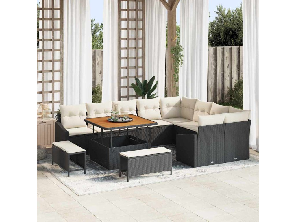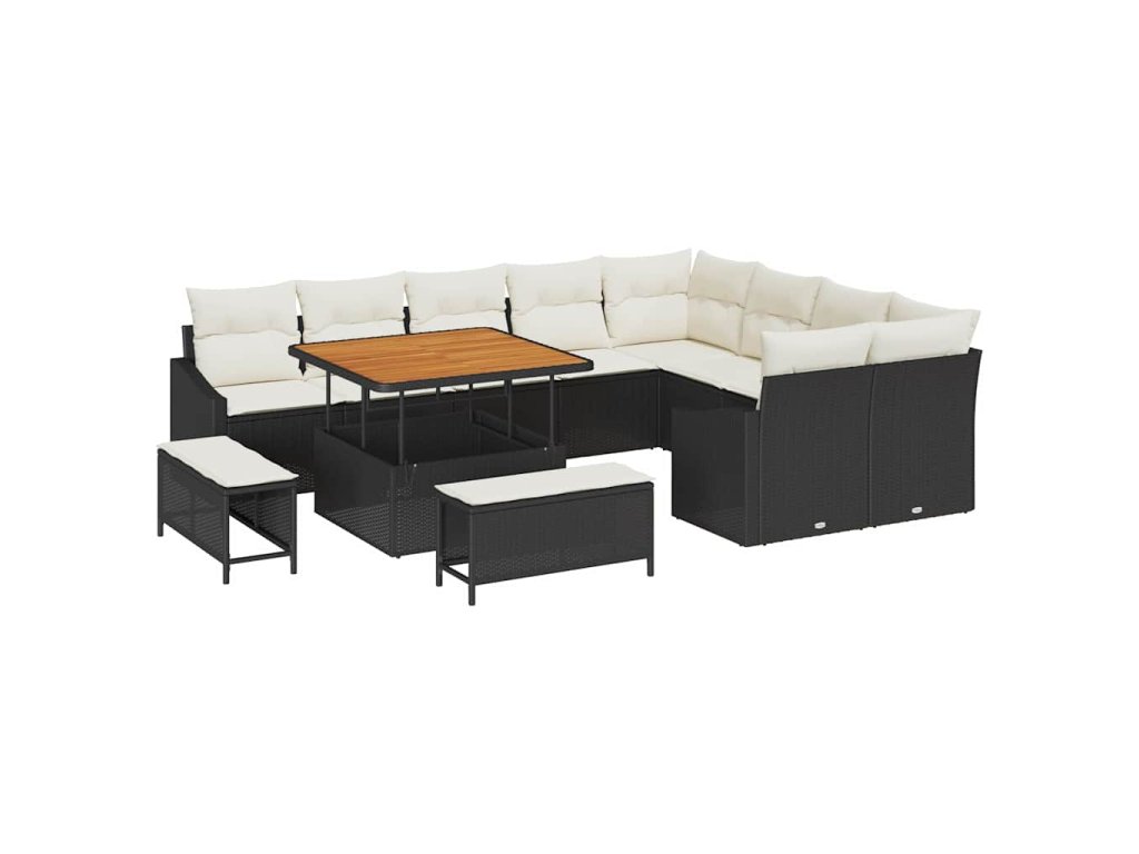Sada zahradních pohovek s polštářem 12 pcs Černá polyratan 3362685